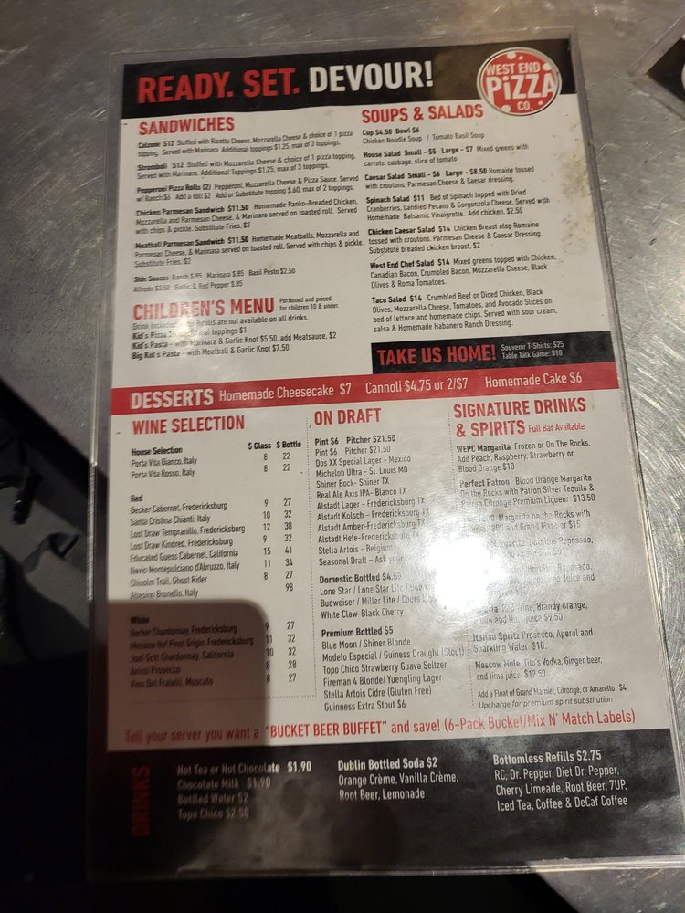 West End Pizza Company, located in Fredericksburg, TX, offers a diverse menu including pizza, salads, and sandwiches. This establishment prides itself on providing excellent customer service with options for delivery, takeout, and reservations. Notably, West End Pizza Company caters to various dietary preferences with vegan options available. The restaurant boasts a casual atmosphere with amenities such as outdoor seating, a full bar, and free Wi-Fi. Customers have praised the delicious food options, mentioning favorites like the combination and pepperoni pizzas. The outdoor patio, dog-friendly policy, and accommodating staff contribute to the welcoming ambiance of this women-owned establishment. Overall, West End Pizza Company is a must-visit for those seeking a cozy dining experience with great food and excellent service.